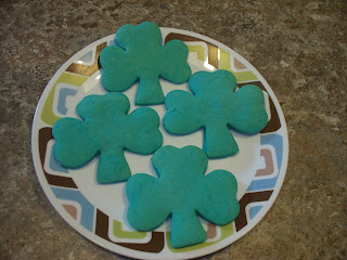 My Attempt at making Blue Girl Guide Trefoil Cookies. They were blue until I added the eggs and the yoke kinda gave them a green tinge....hmmm better luck next time~